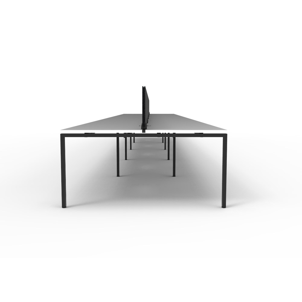 10 person double sided workstation with White top and Black Satin frame, Black Eco screen.