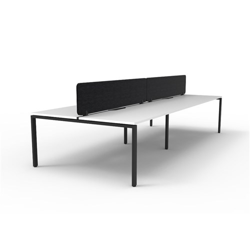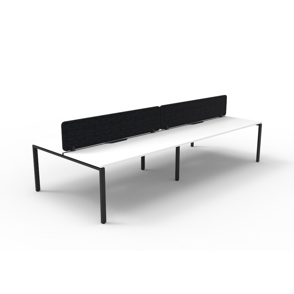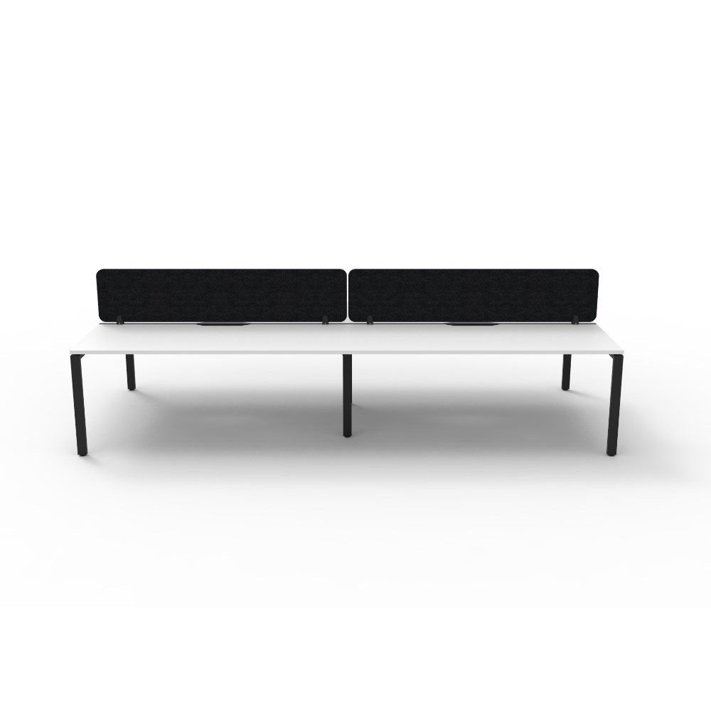 4 person double sided workstation with White top and Black Satin frame, Black Eco screen.