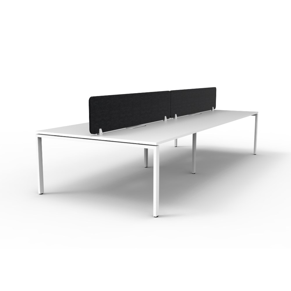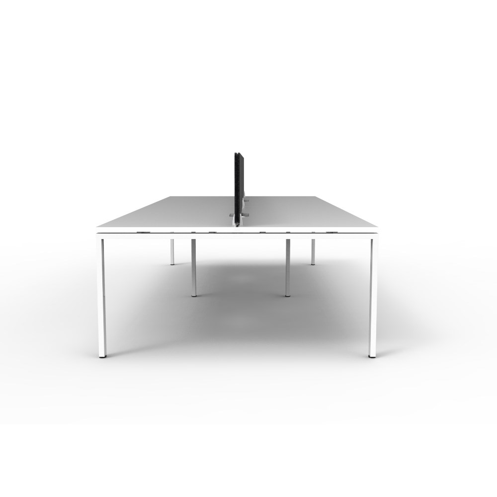 4 person double sided workstation with White top and White Satin frame, Black Eco screen.