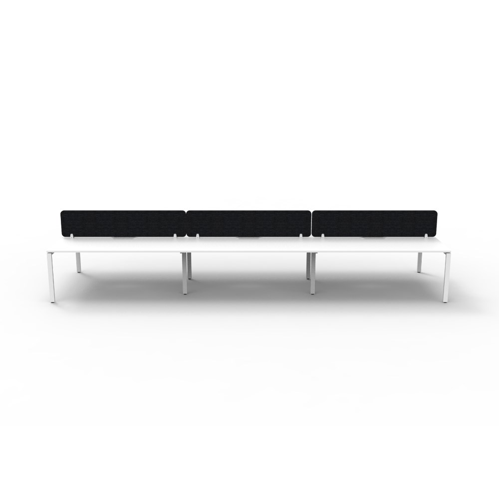 6 person double sided workstation with White top and White Satin frame, Black Eco screen.