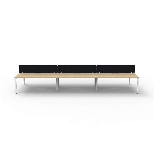 6 person double sided workstation with Natural Oak top and White Satin frame, Black Eco screen.