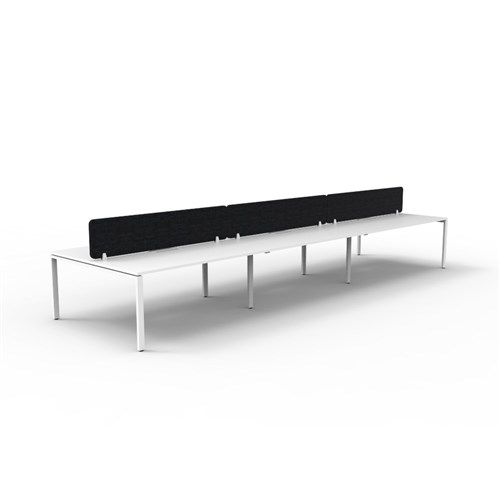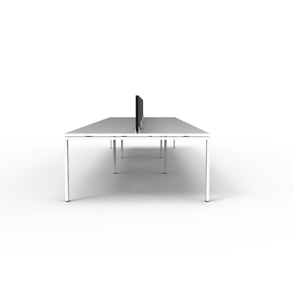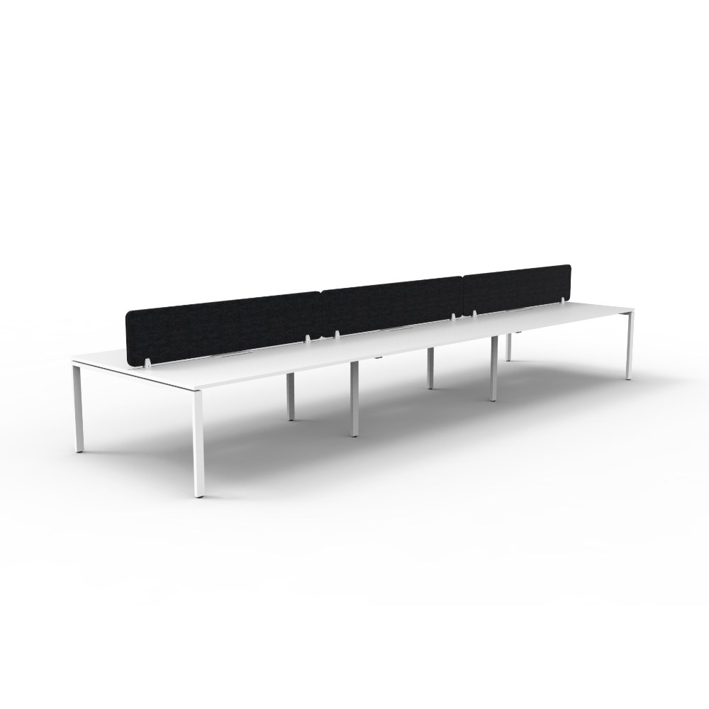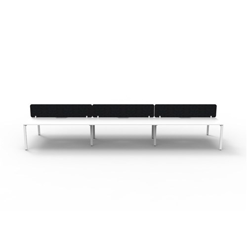 6 person double sided workstation with White top and White Satin frame, Black Eco screen.