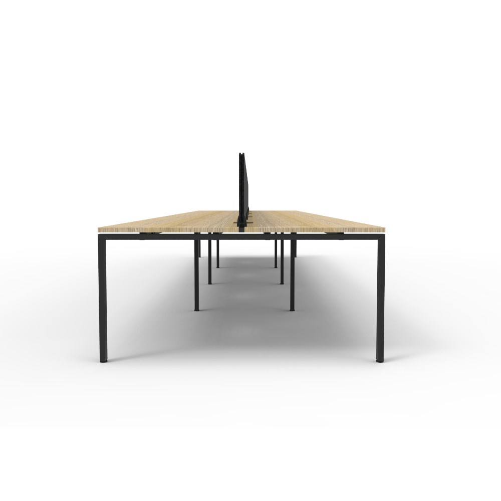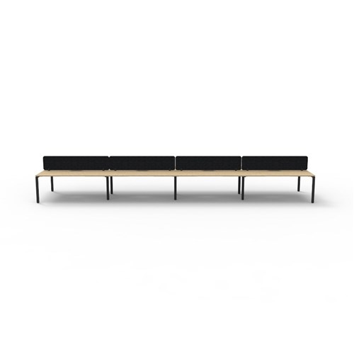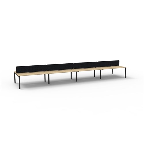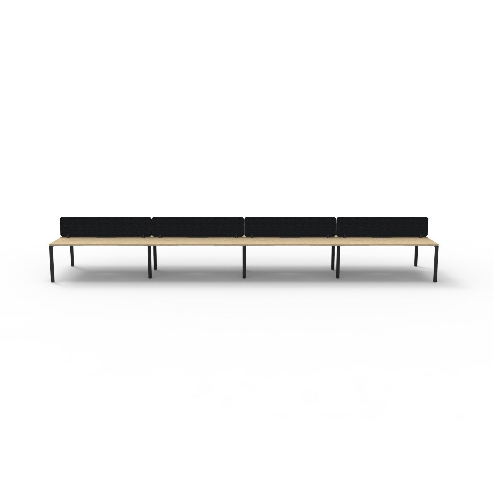 8 person double sided workstation with Natural Oak top and Black Satin frame, Black Eco screen.