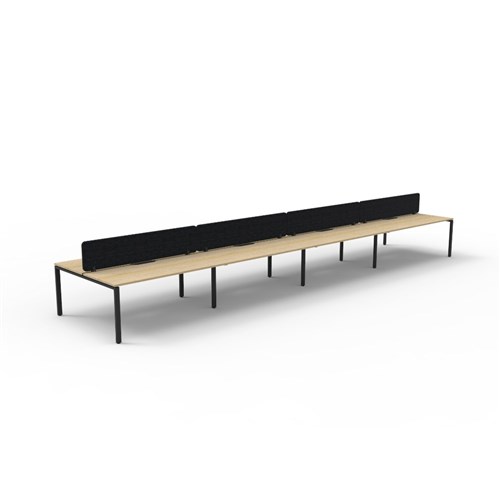 8 person double sided workstation with Natural Oak top and Black Satin frame, Black Eco screen.
