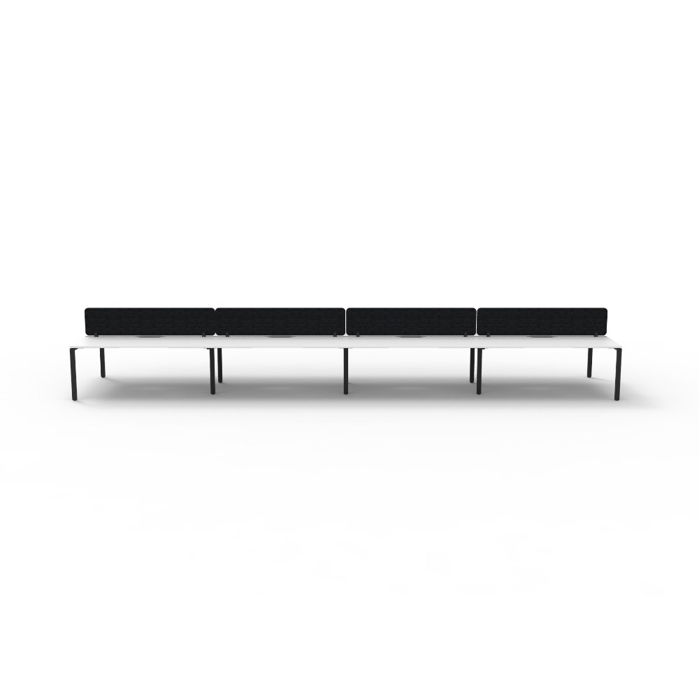 8 person double sided workstation with White top and Black Satin frame, Black Eco screen.