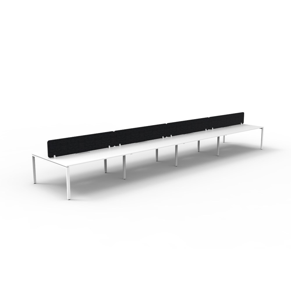 8 person double sided workstation with White top and White Satin frame, Black Eco screen.