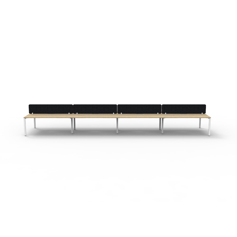 8 person double sided workstation with Natural Oak top and White Satin frame, Black Eco screen.