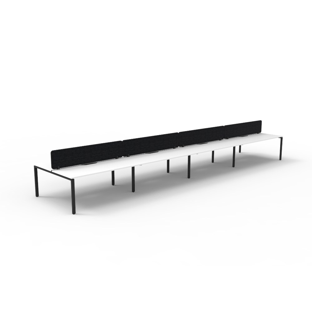 8 person double sided workstation with White top and Black Satin frame, Black Eco screen.
