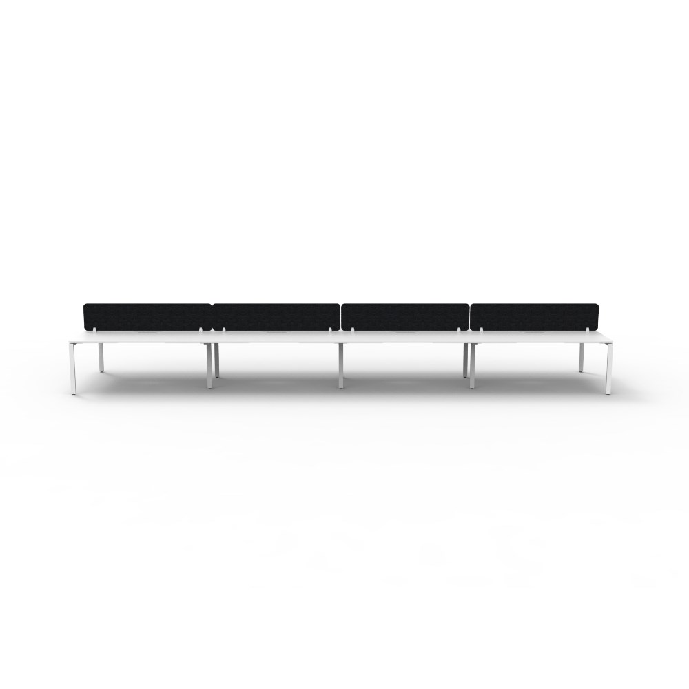 8 person double sided workstation with White top and White Satin frame, Black Eco screen.