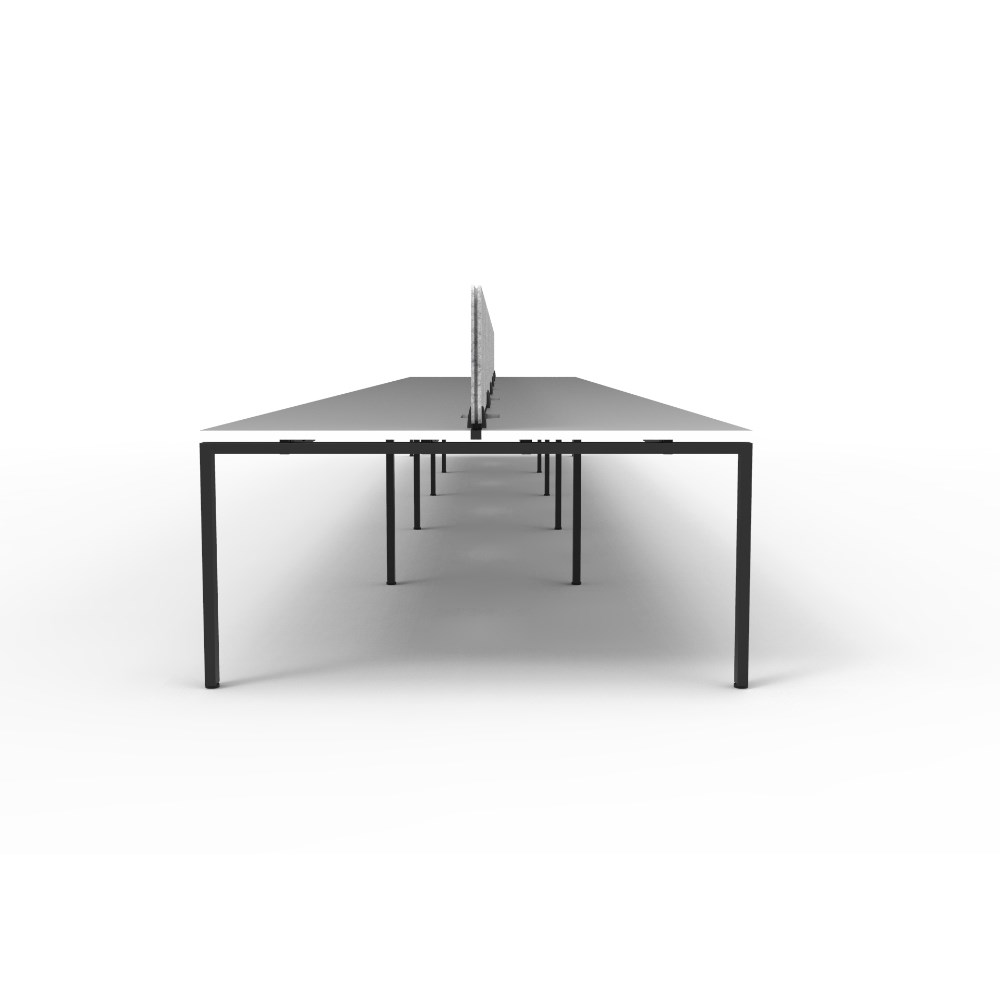 10 person double sided workstation with White top and Black Satin frame, Grey Eco screen.