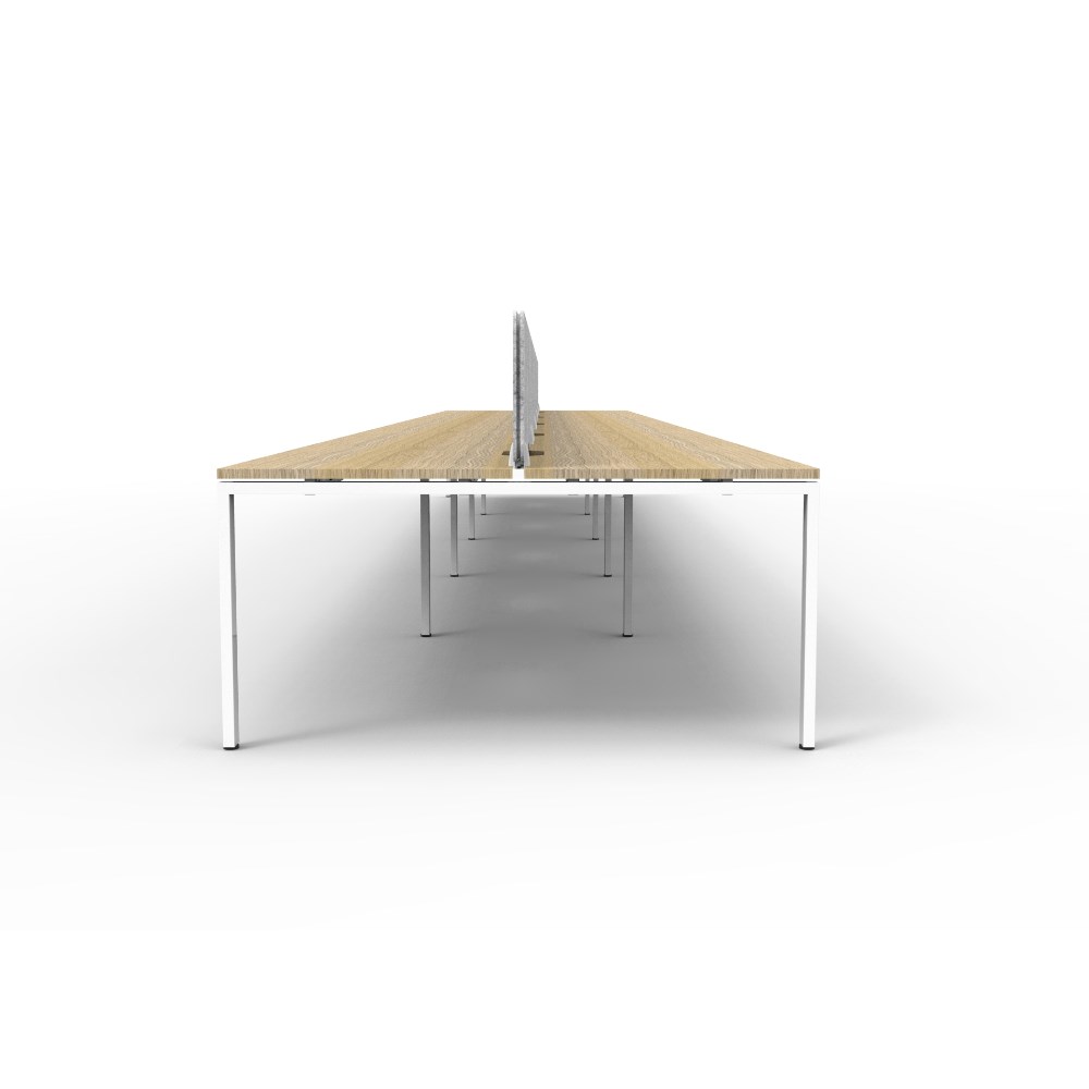 10 person double sided workstation with Natural Oak top and White Satin frame, Grey Eco screen.
