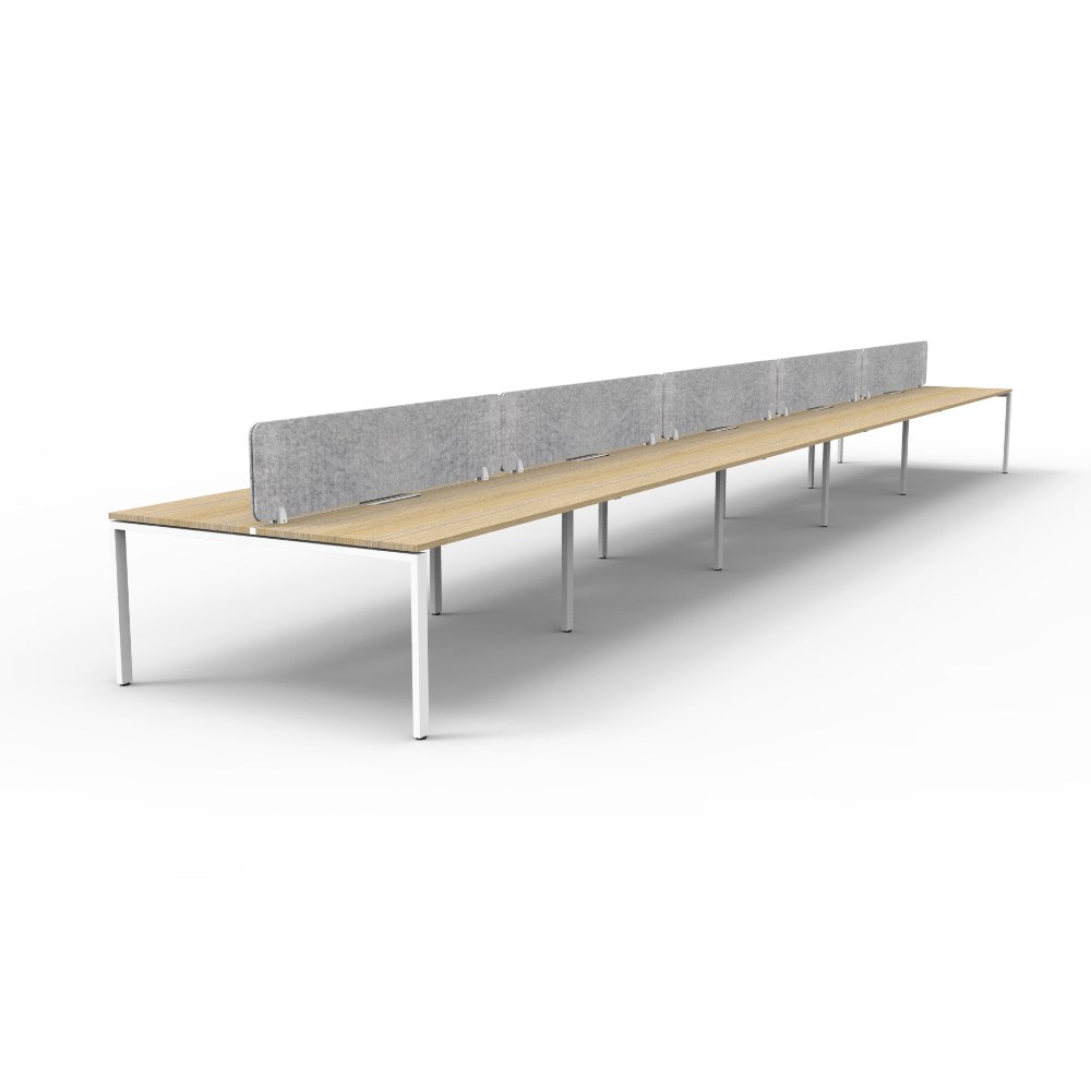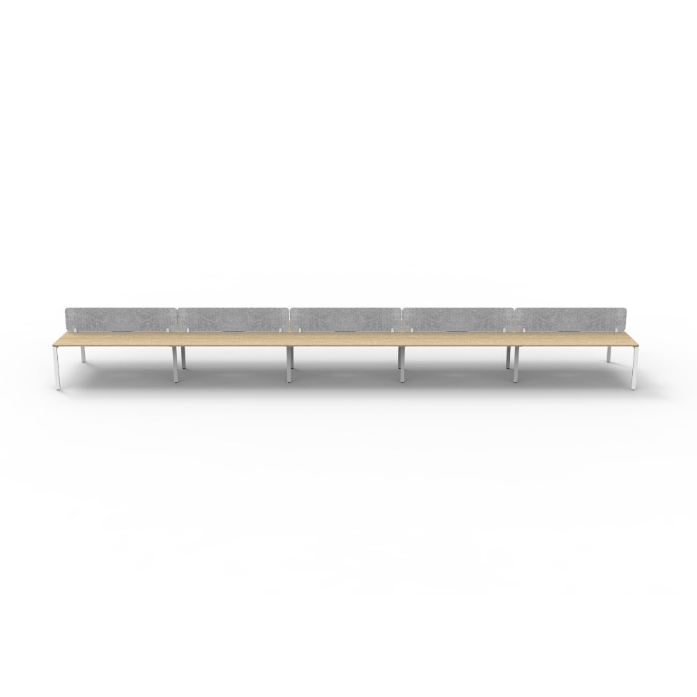 10 person double sided workstation with Natural Oak top and White Satin frame, Grey Eco screen.