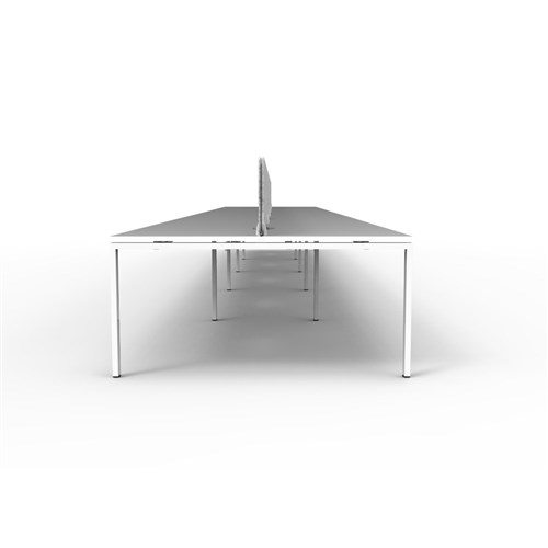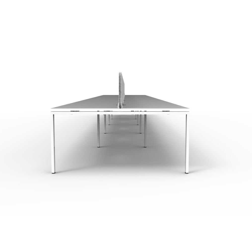 10 person double sided workstation with White top and White Satin frame, Grey Eco screen.
