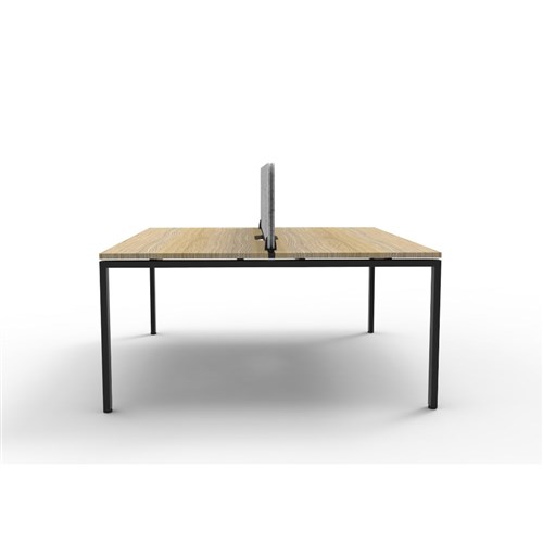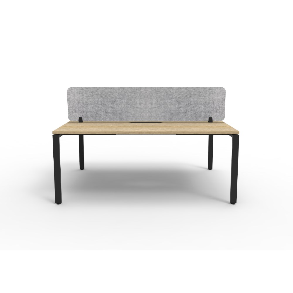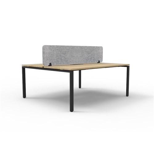 2 person double sided workstation with Natural Oak top and Black Satin frame, Grey Eco screen.