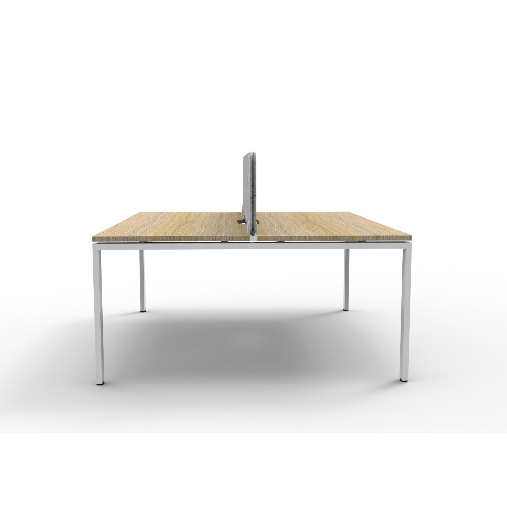 2 person double sided workstation with Natural Oak top and White Satin frame, Grey Eco screen.
