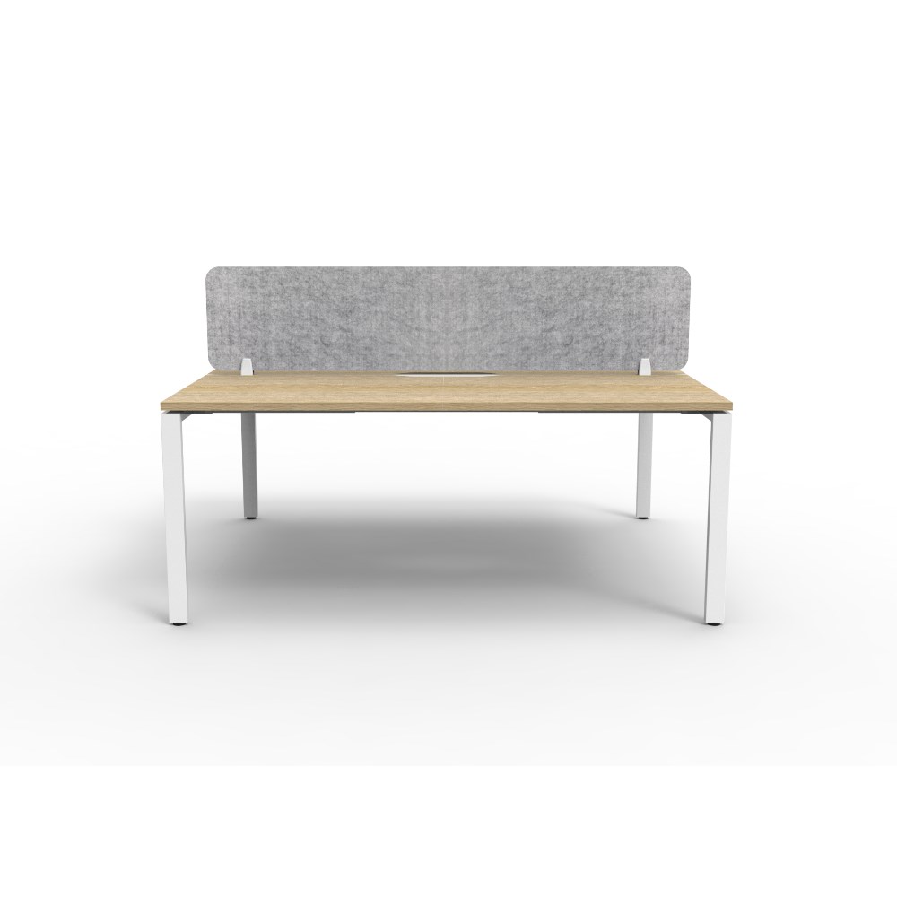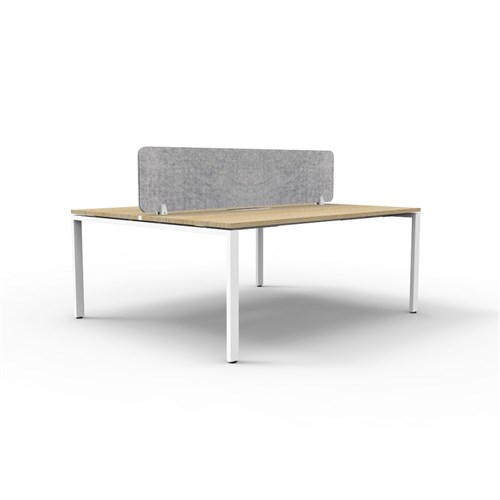 2 person double sided workstation with Natural Oak top and White Satin frame, Grey Eco screen.