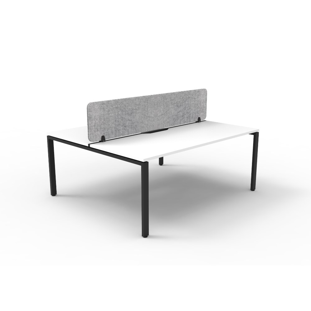 2 person double sided workstation with White top and Black Satin frame, Grey Eco screen.