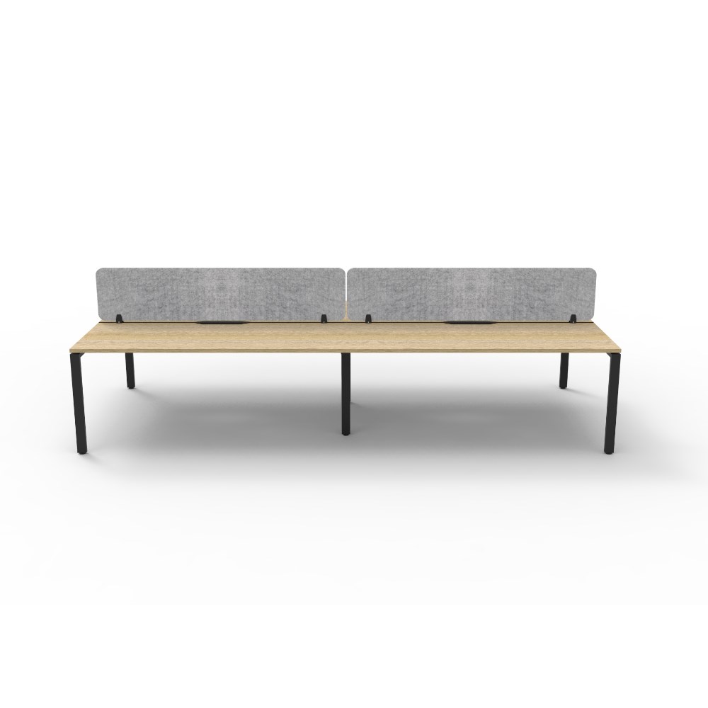 4 person double sided workstation with Natural Oak top and Black Satin frame, Grey Eco screen.