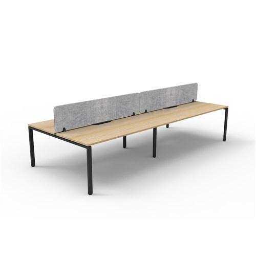 4 person double sided workstation with Natural Oak top and Black Satin frame, Grey Eco screen.