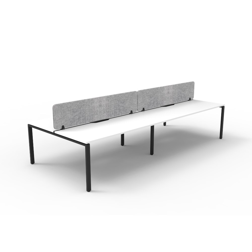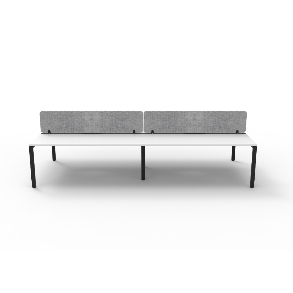 4 person double sided workstation with White top and Black Satin frame, Grey Eco screen.