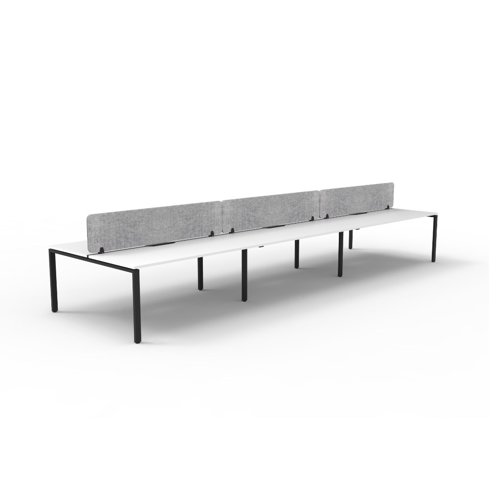 6 person double sided workstation with White top and Black Satin frame, Grey Eco screen.