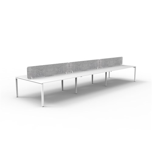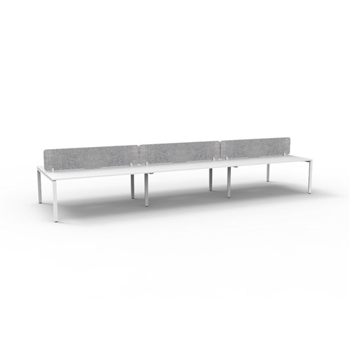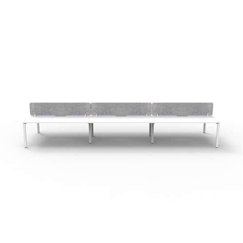 6 person double sided workstation with White top and White Satin frame, Grey Eco screen.