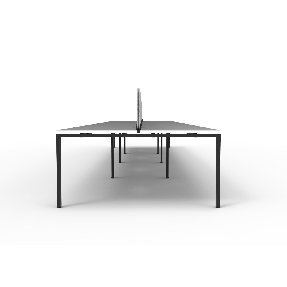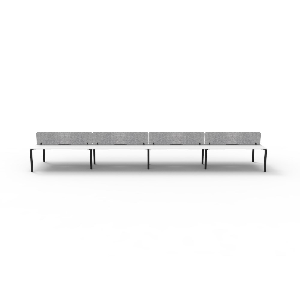 8 person double sided workstation with White top and Black Satin frame, Grey Eco screen.