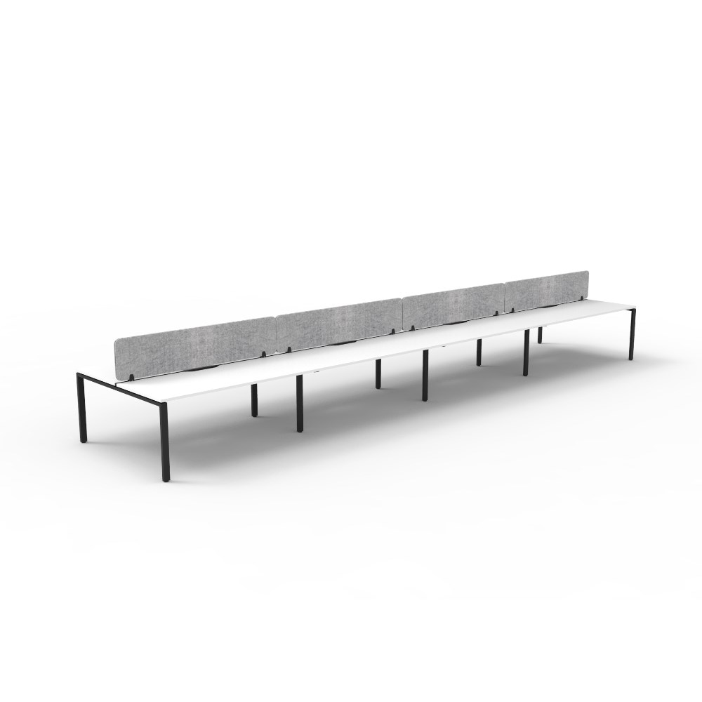 8 person double sided workstation with White top and Black Satin frame, Grey Eco screen.