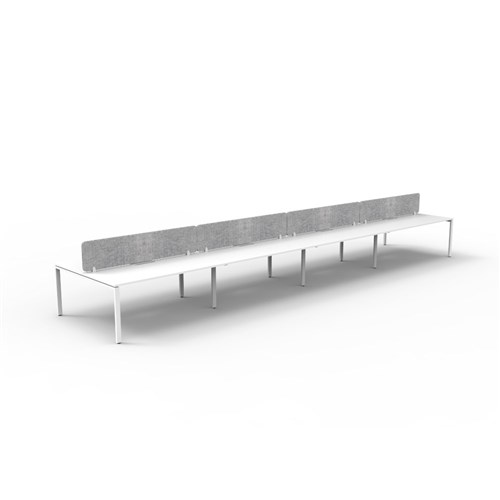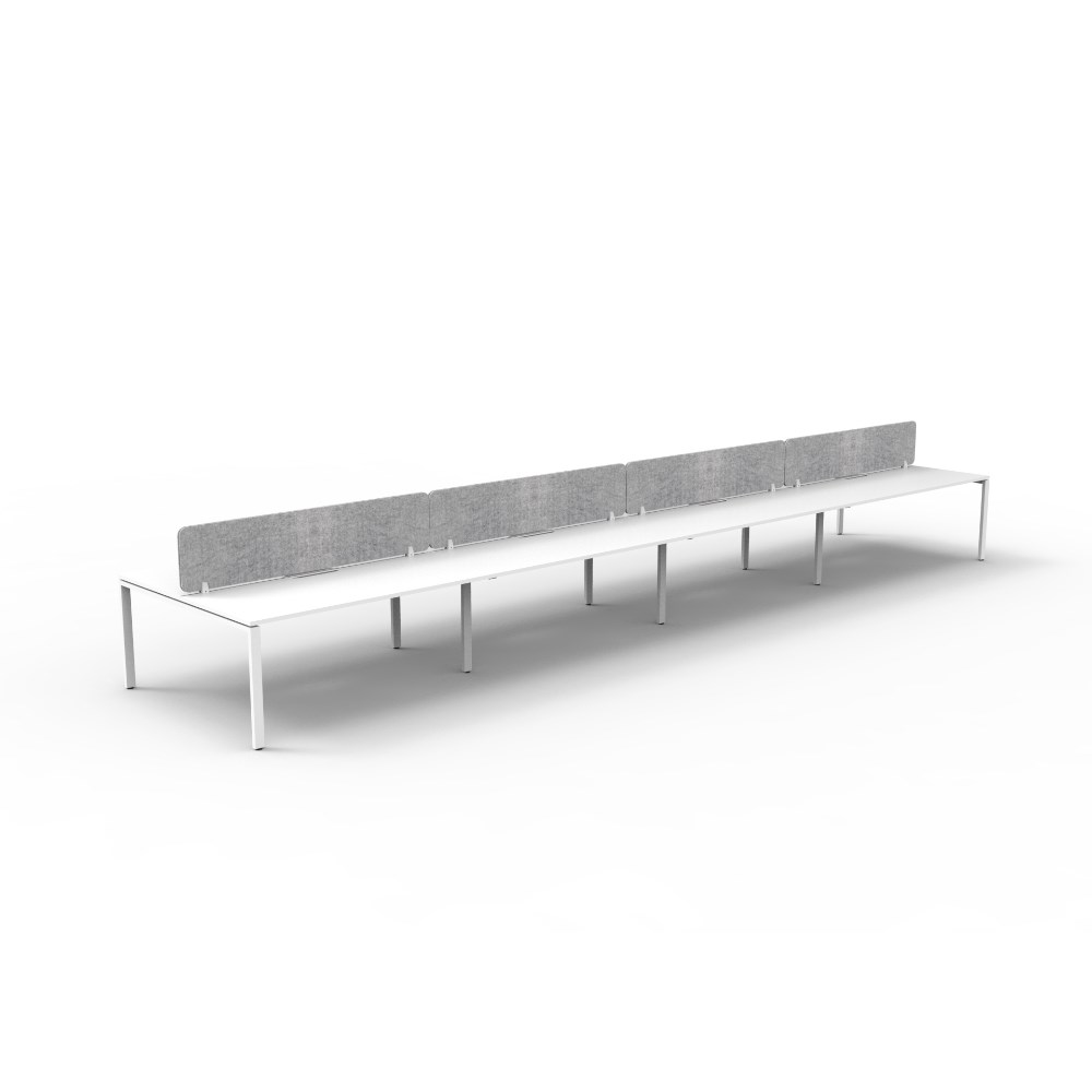 8 person double sided workstation with White top and White Satin frame, Grey Eco screen.