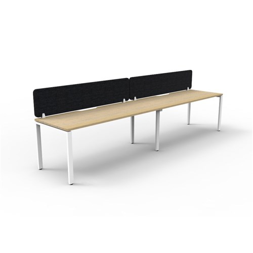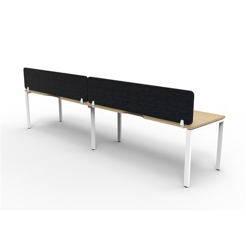 2 person single sided workstation with Natural Oak top and White Satin frame, Black Eco screen.