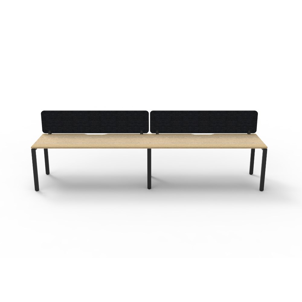 2 person single sided workstation with Natural Oak top and Black Satin frame, Black Eco screen.