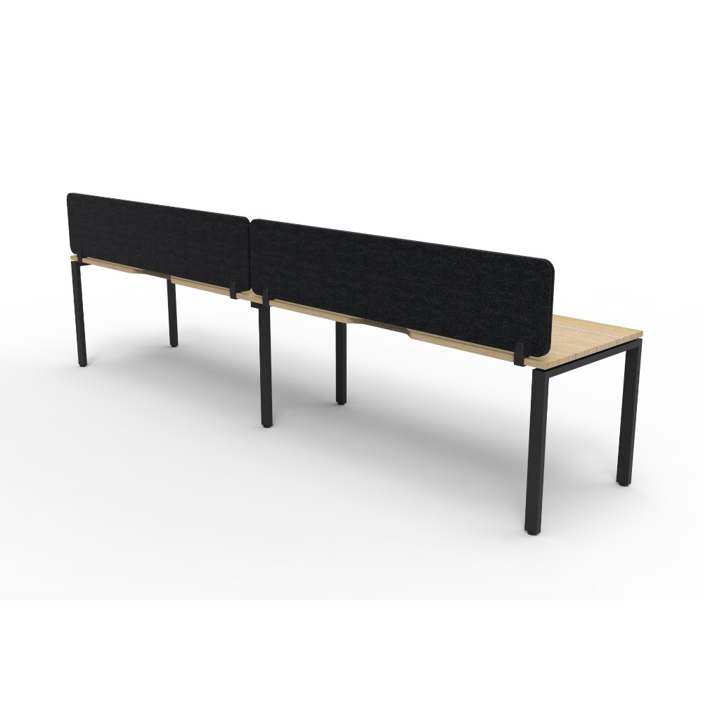 2 person single sided workstation with Natural Oak top and Black Satin frame, Black Eco screen.