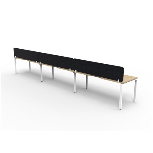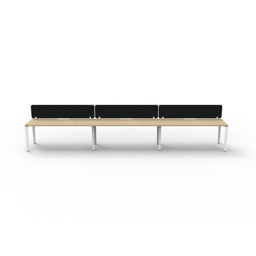 3 person single sided workstation with Natural Oak top and White Satin frame, Black Eco screen.