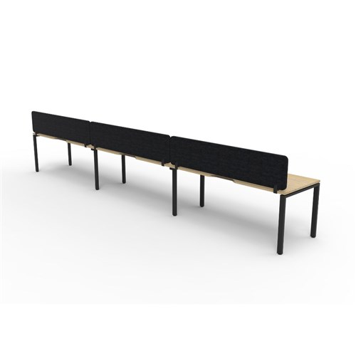 3 person single sided workstation with Natural Oak top and Black Satin frame, Black Eco screen.