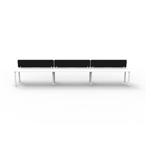 3 person single sided workstation with White top and White Satin frame, Black Eco screen.