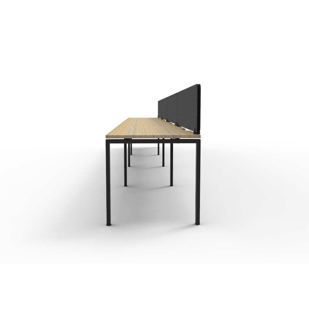 4 person single sided workstation with Natural Oak top and Black Satin frame, Black Eco screen.