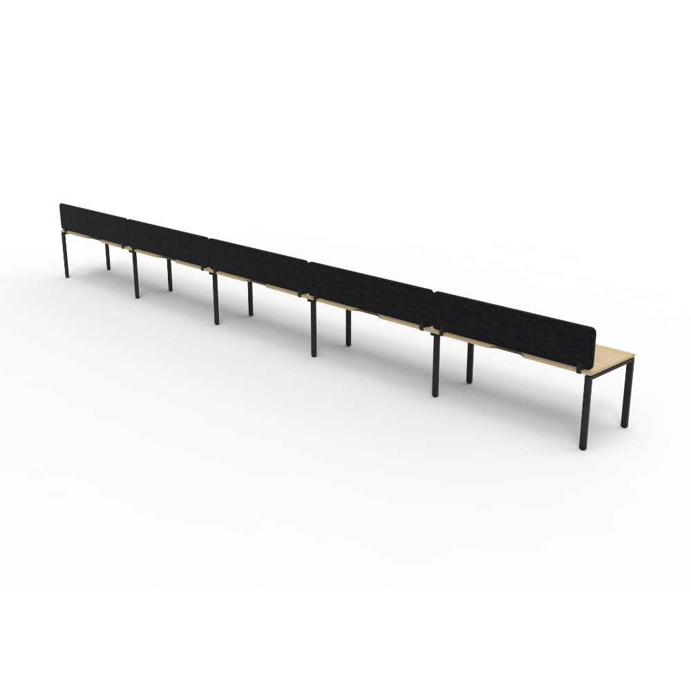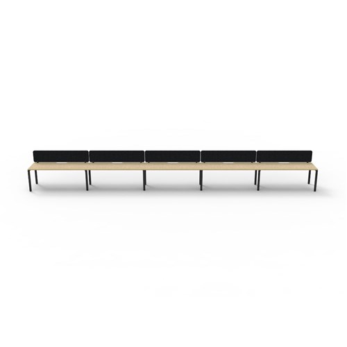5 person single sided workstation with Natural Oak top and Black Satin frame, Black Eco screen.