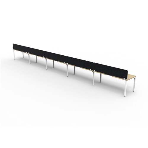5 person single sided workstation with Natural Oak top and White Satin frame, Black Eco screen.