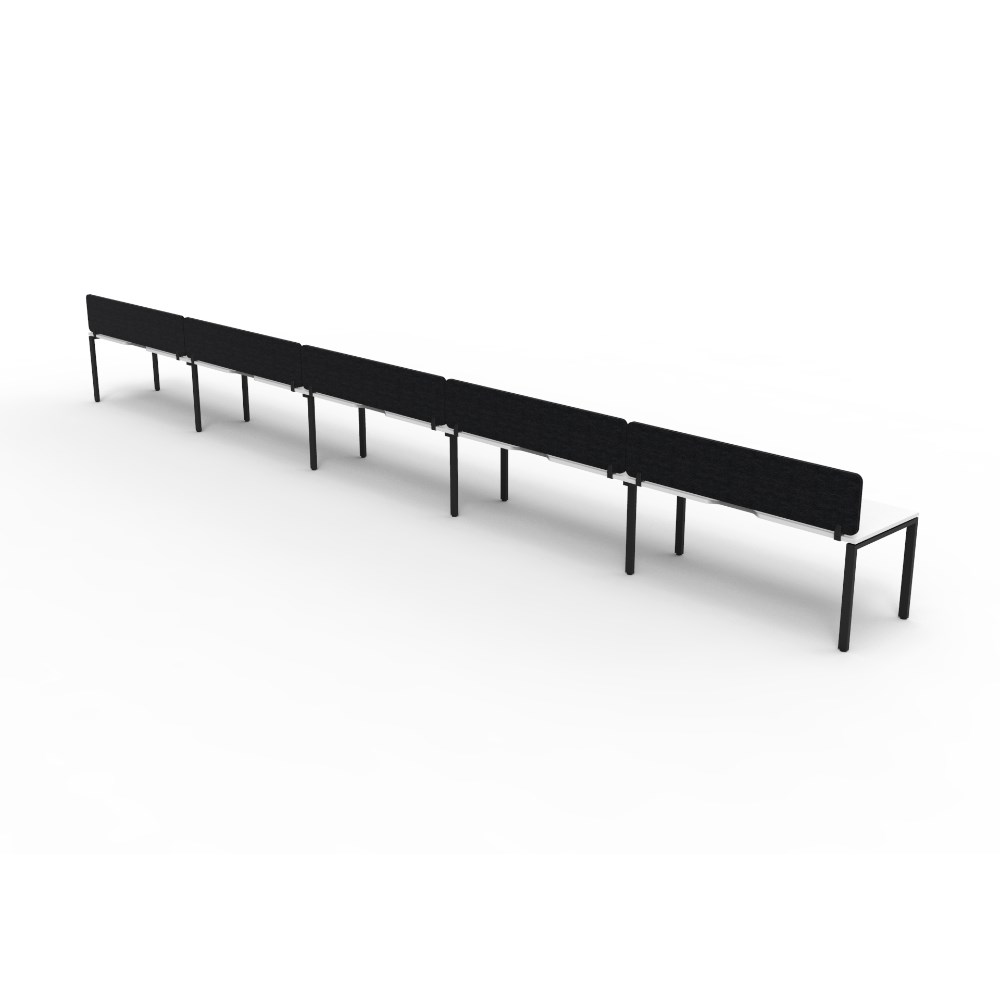 5 person single sided workstation with White top and Black Satin frame, Black Eco screen.