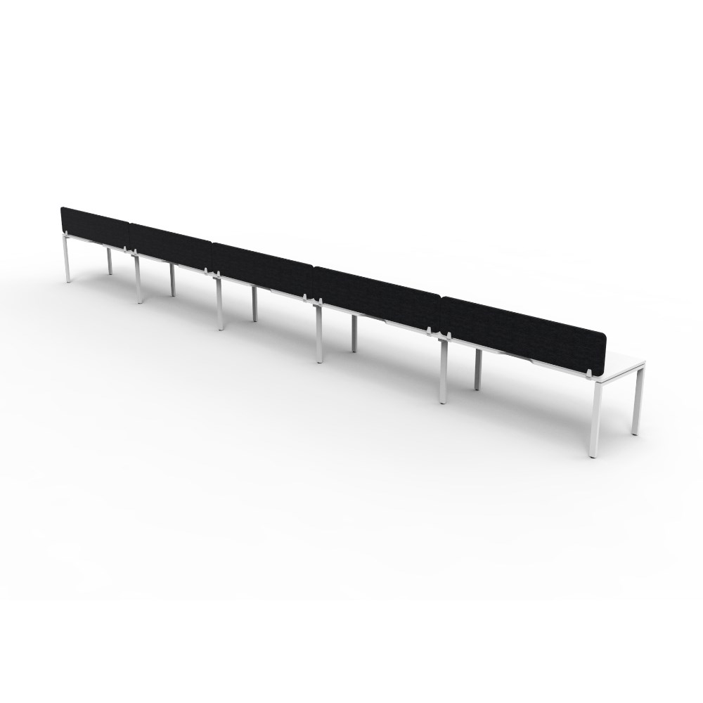 5 person single sided workstation with White top and White Satin frame, Black Eco screen.