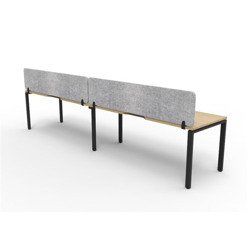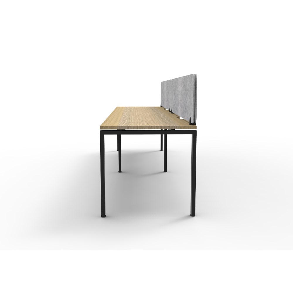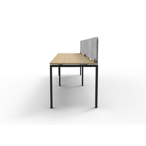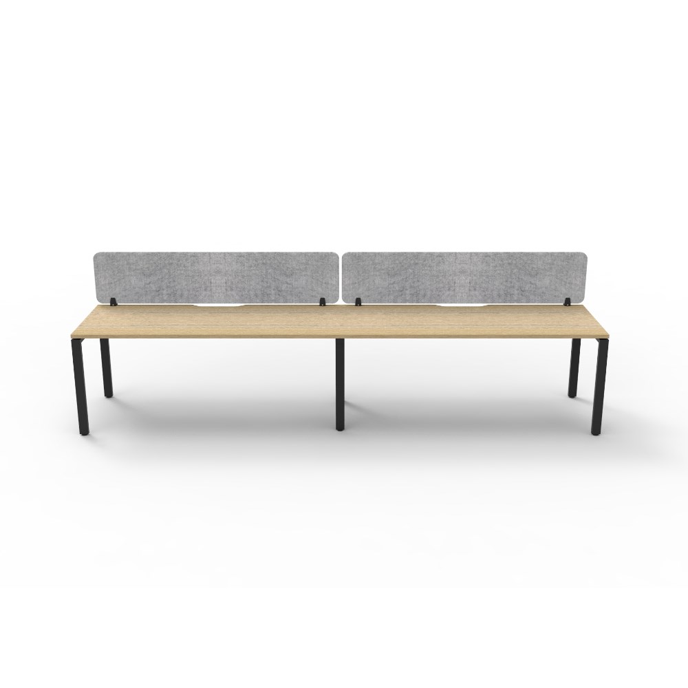 2 person single sided workstation with Natural Oak top and Black Satin frame, Grey Eco screen.