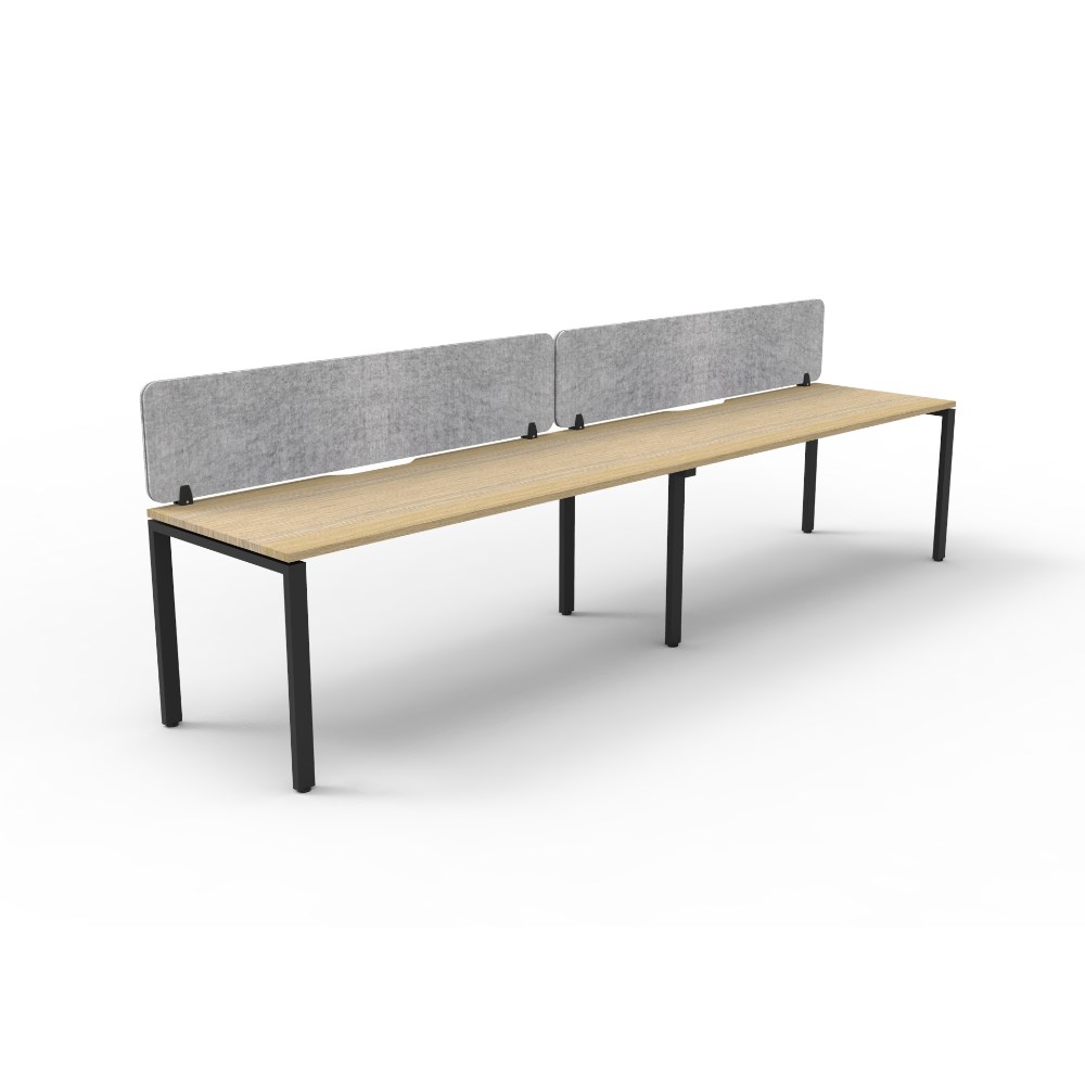 2 person single sided workstation with Natural Oak top and Black Satin frame, Grey Eco screen.