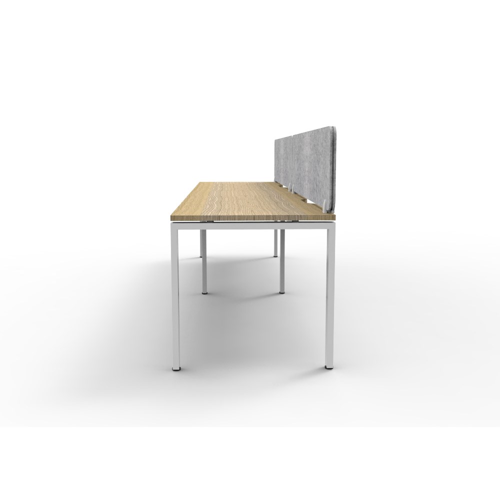 2 person single sided workstation with Natural Oak top and White Satin frame, Grey Eco screen.