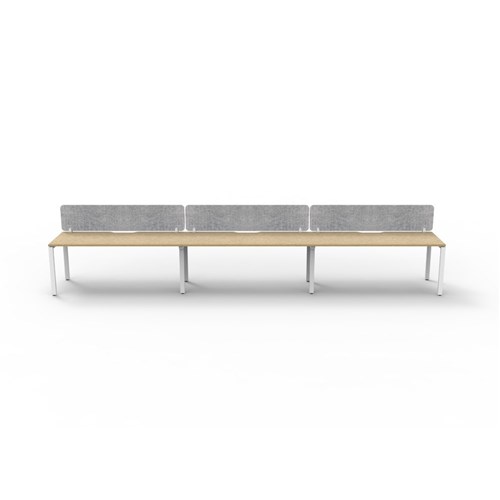 3 person single sided workstation with Natural Oak top and White Satin frame, Grey Eco screen.