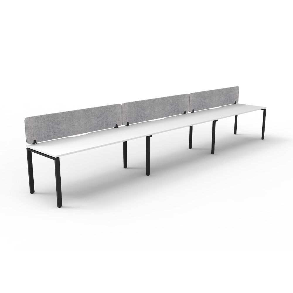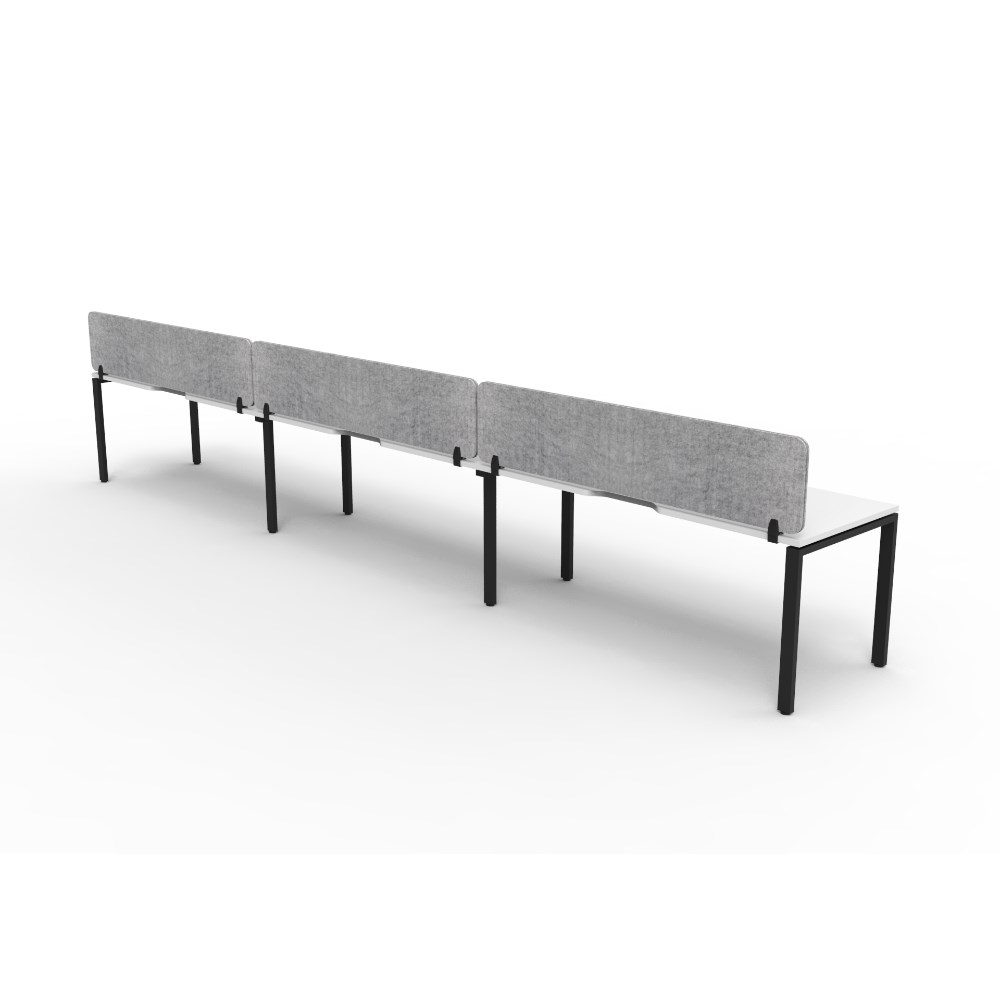 3 person single sided workstation with White top and Black Satin frame, Grey Eco screen.