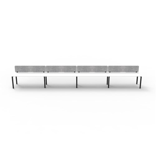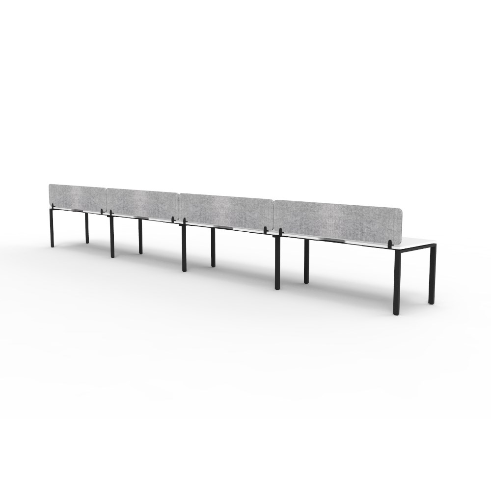 4 person single sided workstation with White top and Black Satin frame, Grey Eco screen.