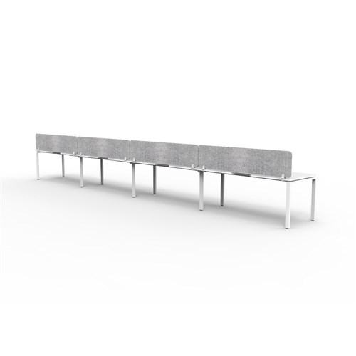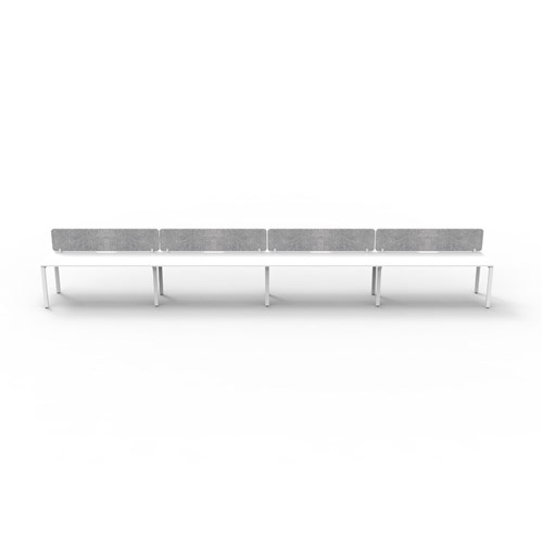 4 person single sided workstation with White top and White Satin frame, Grey Eco screen.
