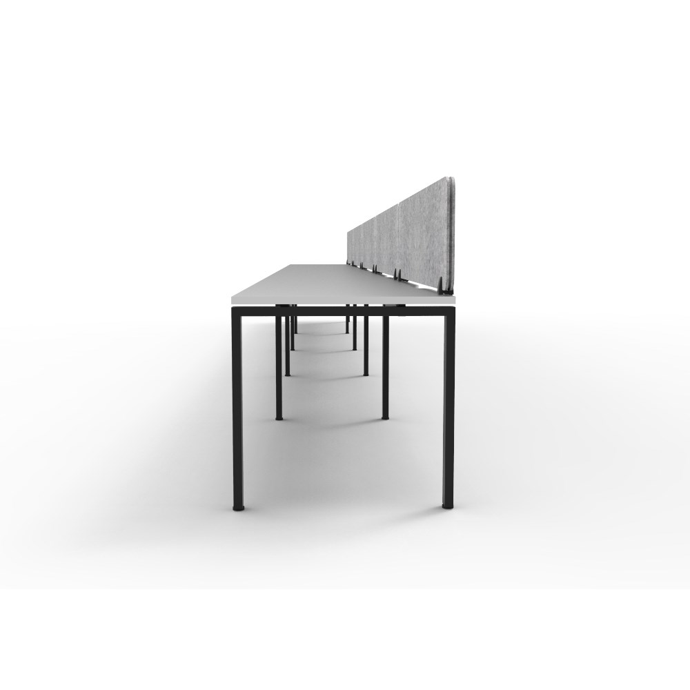 5 person single sided workstation with White top and Black Satin frame, Grey Eco screen.