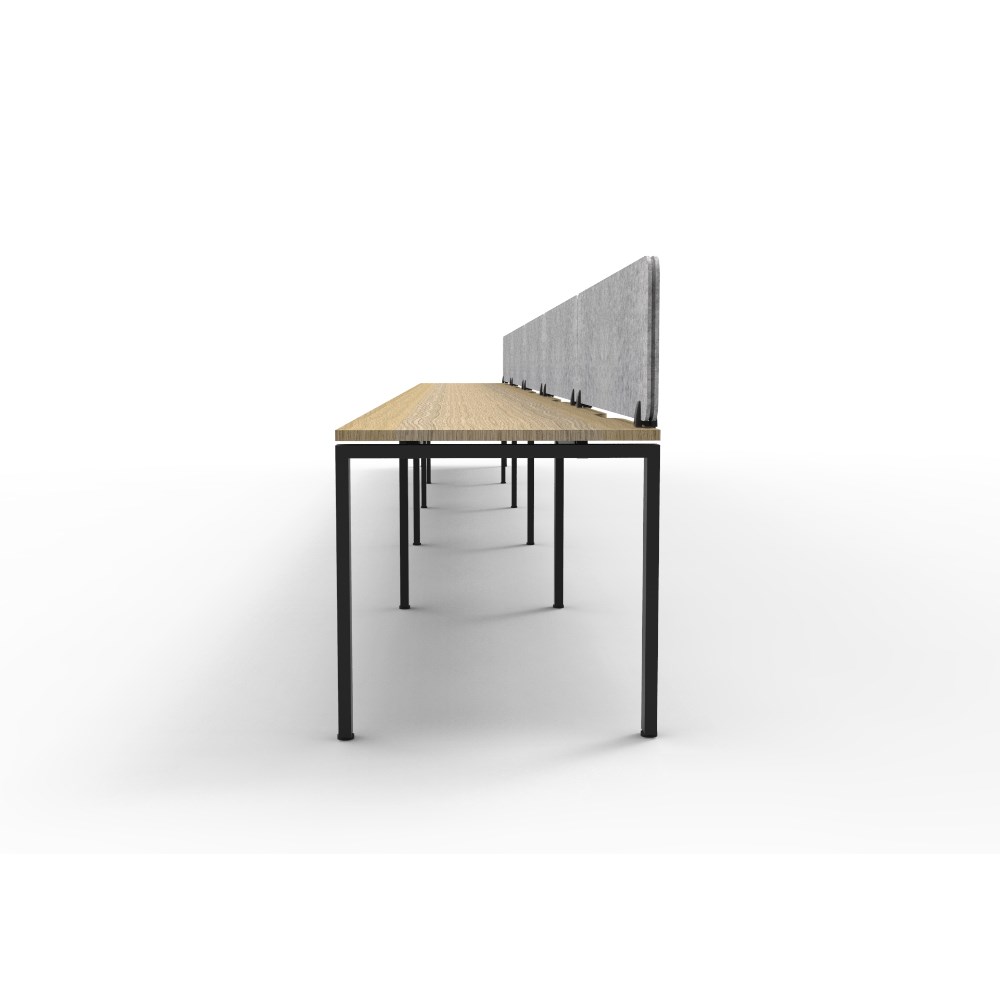 5 person single sided workstation with Natural Oak top and Black Satin frame, Grey Eco screen.