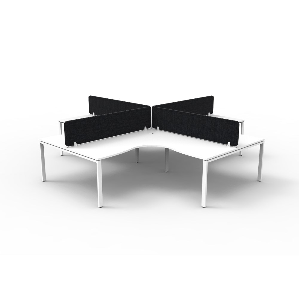 4 person corner workstation POD with White top and White Satin frame, Black Eco screen.